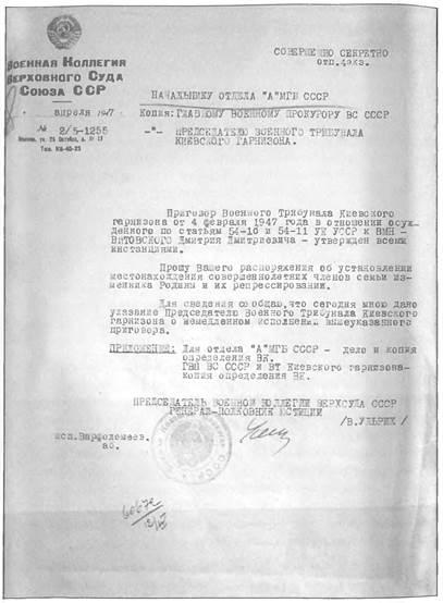 Вирок військової колеги Верховного суду СРСР у справі Дмитра Вітебського, 8 квітня 1947 р.