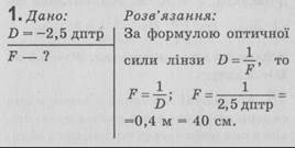 Відповідь: F = 40 см; лінза розсіювальна, тому бабуся має короткозорість.