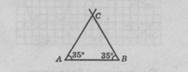 2) За допомогою лінійки будуємо відрізок АВ завдовжки 3 см. Від променя АВ за допомогою транспортира відкладемо кут з вершиною в точці А, градусна міра якого 35°. Від променя ВА по той самий бік від прямої АВ, по який було відкладено кут А, відкладемо кут з вершиною в точці В, градусна міра якого дорівнює 35°. Знайшовши точку С — перетину сторін кутів А і В, отримаємо шуканий трикутник ABC.