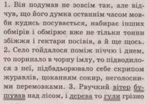 Я стаю ніби меншим, а навколо більшає, росте і міниться увесь світ: і загачене білими хмарами небо, і одноногі скрипучі журавлі, що ніколи не полетять, і полатані веселим зеленим мохом стріхи, і блакитна діброва під селом, і туманцем підволохачена земля, що пробилась з-під снігу.