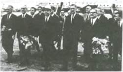 Зустріч на аеродромі партійно-урядової делегації НДР. У центрі (зліва направо): П. Шелест, В. Щербицький, Е. Хонеккер. Київ, липень 1969 р.