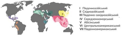 - 1. Назвіть центри різноманітності й походження культурних рослин.