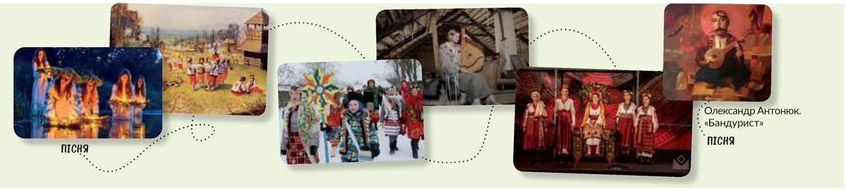 • Мотиви народних пісень сьогодні часто використовують сучасні виконавці й виконавиці. Які композиції на основі народних пісень ти знаєш?