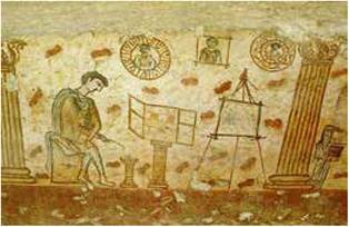 До наших часів збереглися пам’ятки монументального живопису, що прикрашали підлоги і стіни домівок заможних мешканців. Наприклад, під час розкопок на одній із площ у місті Керчі було відкрито рідкісний саркофаг І-го століття н. е. Усередині він розписаний сюжетними композиціями з життя художника, серед яких зображення митця в інтер’єрі та мольберта з підрамником. Три портрети висять на стіні, два з них уже вставлені у круглі рами.