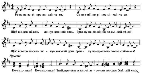 Розучіть і виконайте пісню «Посміхайтеся» (музика Олександра Осадчого, вірші Андрія Дмитрука) в настрої.