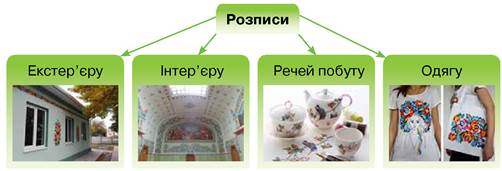 Розписом прикрашалася оселя, посуд, меблі тощо.