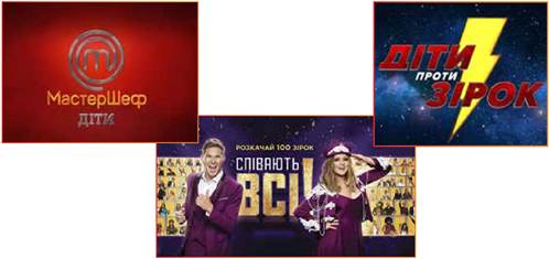 За бажанням, перегляньте телепередачі, заставки яких представлені на світлинах. У чому особливості проведення шоу? Уявіть, що ви звукорежисери/звукорежисерки цих програм, якою музикою ви б озвучили події, які відбуваються на шоу? Підберіть музичний фрагмент до програми, яка вам найбільше сподобалась.
