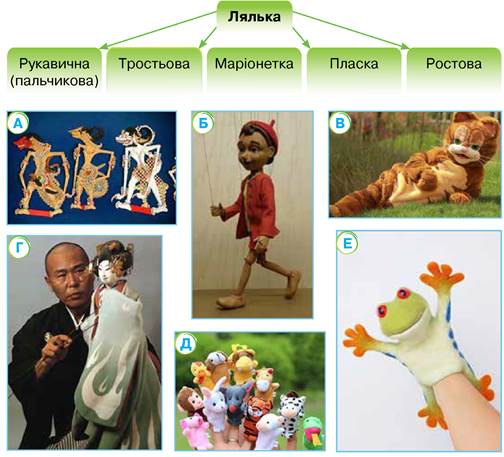 1. Розстав театральних ляльок за видами.