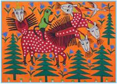 Марія Приймаченко. «Мавпа їде на чотириголовому звірі»