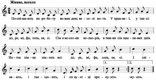 Розучіть пісню «Веселі ноти» (музика і слова Ігора Танчака).