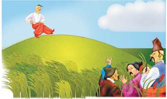 — Гляди ж, вари так, щоб і не сира була, щоб і не перекипіла, а ми підемо косити. То ти, як уже буде готова, вийди на такий-то курган і клич нас, а ми почуємо та й прийдемо.