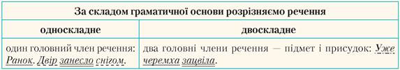 А. Визначте види простих речень за складом граматичної основи (односкладне чи двоскладне) (усно).