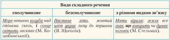 Б. Визначте вид кожного складного речення — сполучникове, безсполучникове чи з різними видами зв’язку.