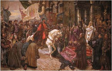 - 3. Роздивись репродукцію картини Миколи Івасюка «Гетьман у Києві». Чи можна її використати, як історичне джерело інформації?