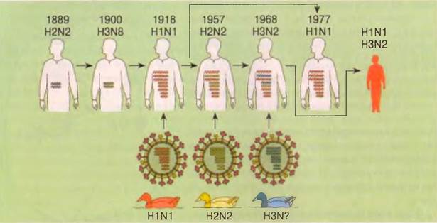 Рис. 32.4. Последовательные штаммы (эволюция) вируса гриппа