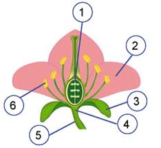1. Розгляньте малюнок будови квітки, запишіть, якими цифрами на ньому позначено структури або процеси, які в них відбуваються.