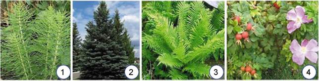 1. Установіть відповідність між зображенням представника вищих рослин та ознаками групи, до якої він належить.