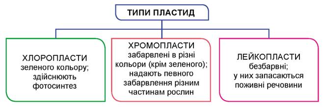 Мал. 6.1. Типи пластид у клітинах рослин