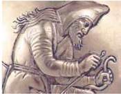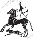 Киммерийский воин. Всадник одет в узкие штаны, мягкие ботинки и короткий плащ. На голове - островерхая шапка-башлык.