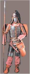На основе иллюстрации и текста составьте портрет скифского воина, описав его одежду и снаряжение. Используйте слова: лук, копье с железным наконечником, меч, рубашка-панцирь, шлем, щит.