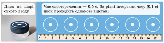 Рис. 9.2. Під час руху диска тертя майже відсутнє, тому горизонтальний рух диска наближається до руху за інерцією