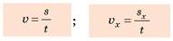 Напрямок вектора швидкості руху збігається з напрямком переміщення тіла, а модуль і проєкцію швидкості визначають за формулами: