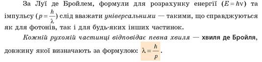 У 1924 р. французький фізик Луї де Бройль (1892-1987) висунув гіпотезу, згідно з якою корпускулярно-хвильовий дуалізм є характерним не лише для фотонів, а й для будь-яких інших мікрочастинок.