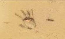 Рис. 22.2. Якщо на поверхню піску натиснути рукою, то глибина сліду залежатиме від того, як саме було натиснуто — долонею чи пальцем (за однакової сили тиску)