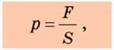 де p — тиск; F — сила тиску — сила, що діє на поверхню перпендикулярно до неї; S — площа цієї поверхні.