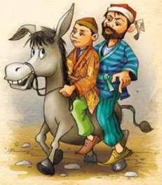 Якось батько з сином мандрували. Батько сидів на віслюку, а син вів віслюка за вуздечку. Раптом вони почули, як один перехожий каже іншому: