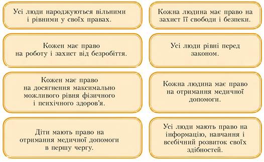 - пригадаєш основні права людини;