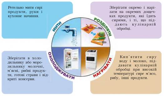 Мал. 65. Правила обробки і зберігання харчових продуктів