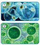 Іл. 39. Кулясті клітини ночесвітки (1), хлорели (2)