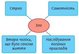 2. Розгляньте схему 2. У ній ваші однолітки спробували пояснити, у чому причини нещасть персонажів п’єси.