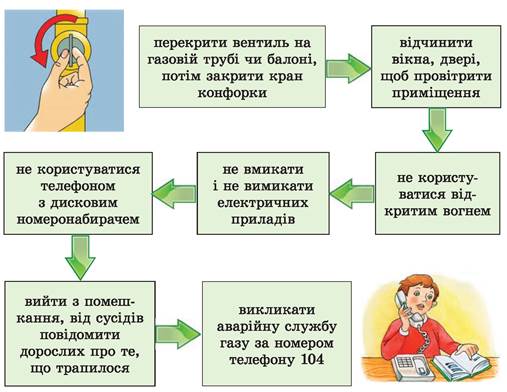 Правила безпечного користування газом, які вивчили в попередніх класах.