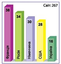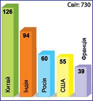 Мал. 36. Лідери з виробництва пшениці, млн тонн (2014 р.)