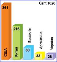 Мал. 37. Лідери з виробництва кукурудзи, млн тонн (2014 р.)