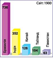 Мал. 38. Лідери з виробництва цукрової тростини, млн тонн (2014 р.)