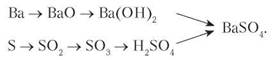 У наведеному ланцюжку перетворень є два ряди генетично пов’язаних речовин. Перший починається металом, другий — неметалом. З металу барію через кілька перетворень добувають барій сульфат. Однак цю сіль можна добути через низку перетворень, починаючи від неметалу сірки.