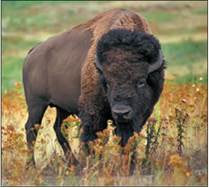 Рис. 6. Бизон — крупное копытное животное, ранее обитавшее в прериях. В начале 90-х гг. XX в. американский бизон перестал существовать как свободное животное. Несколько сотен сохранившихся особей были помещены в национальные парки и заповедники. В наше время насчитывается более 150 тыс. бизонов.
