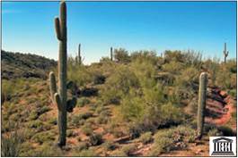 Рис. 7. На юго-востоке Калифорнии расположена субтропическая пустыня Сонора — одна из красивейших пустынь на Земле. Как и в большинстве пустынь, ее поверхность изрезана руслами высохших рек. Флора пустыни насчитывает около 2,5 тыс. видов высших растений. Но главная ее особенность — разнообразные кактусы, которые цветут здесь с апреля по сентябрь.