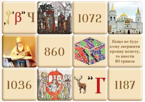 - картка лото (перед вами), у якій приховані важливі моменти історії Русі-України;