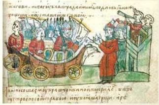 Штурм Олегом Царгорода (малюнок із Радзивіллівського літопису кінця XV ст.)