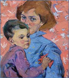 9. Розглянь репродукцію фрагмента картини Алли Горської «Автопортрет з сином». Які емоції та почуття вона в тебе викликала?