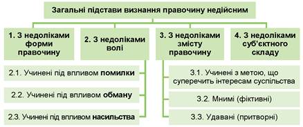 - 4. Які підстави визнання правочину недійсним існують?