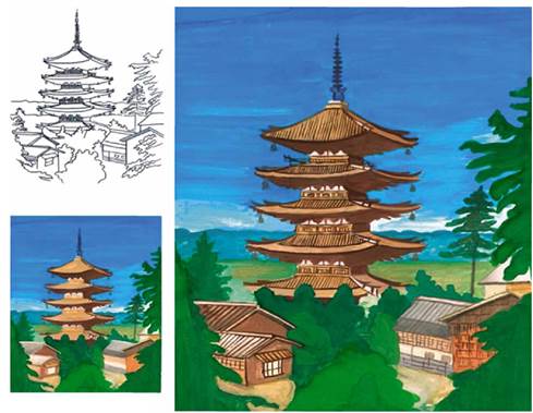 Відтворіть у живописі свої враження від архітектури Далекого Сходу.