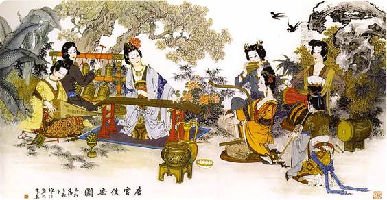 Слід зазначити, що в поняття «музика» давні китайці вкладали дещо інший зміст, ніж це робимо ми. Під «музикою» (юе) вони розуміли ритуальний танок під акомпанемент музичних інструментів. Буквально кожна нота, кожен музичний ритм, найменший жест танцівника щось символізували. Закодованою мовою музики й танцю китайці розповідали цілі історії з життя легендарних героїв, відтворювали яскраві історичні сюжети, виявляли своє ставлення до політичного життя країни тощо.