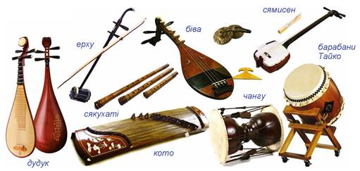 1. Схарактеризуйте особливості музичного та синтетичних (театру, хореографії, кінематографа) видів мистецтва країн Далекого Сходу.