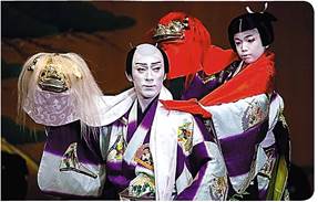 У театрі Кабукі органічно поєднано спів, музику, танець і драму. Важливою специфікою жанру є складний різнокольоровий грим, нанесений на обличчя акторів, який має строго визначене забарвлення залежно від того, яку роль (амплуа) виконує актор, та яскраве символічне вбрання акторів.