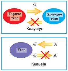 Рис. 29.1. Два формулювання другого закону термодинаміки: можливі та неможливі процеси